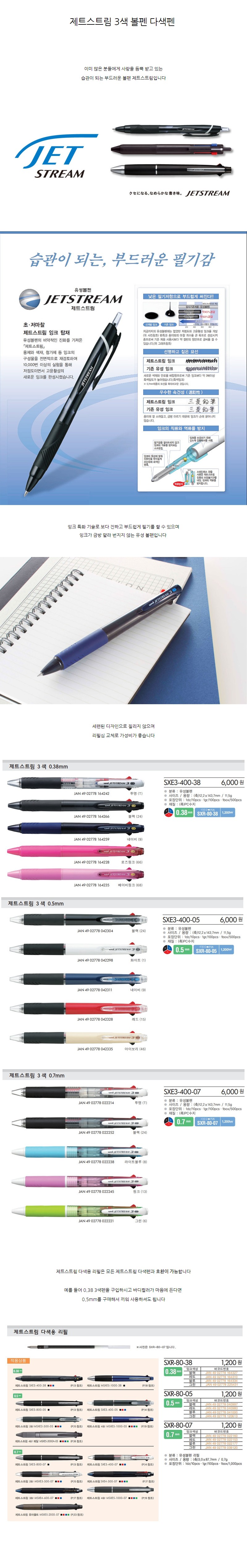 제트스트림 3색 볼펜 0.5 다색펜 멀티펜