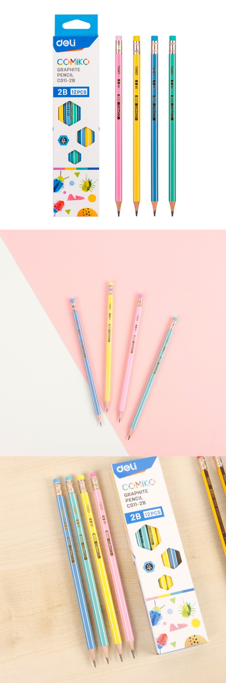 [델리] 파스텔컬러 육각그립 지우개연필 HB/2B