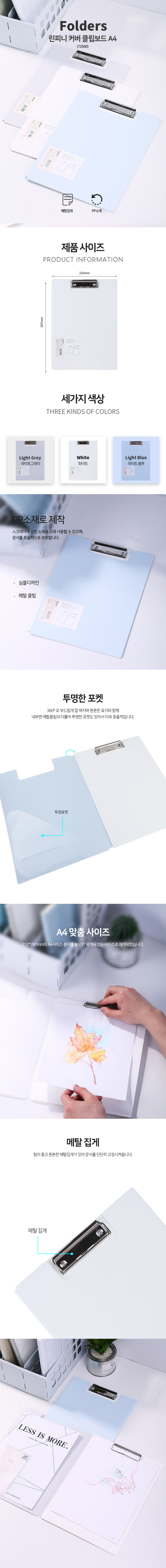 [델리] 파스텔 커버 클립보드 서류받침 결재판 메뉴판 A4사이즈