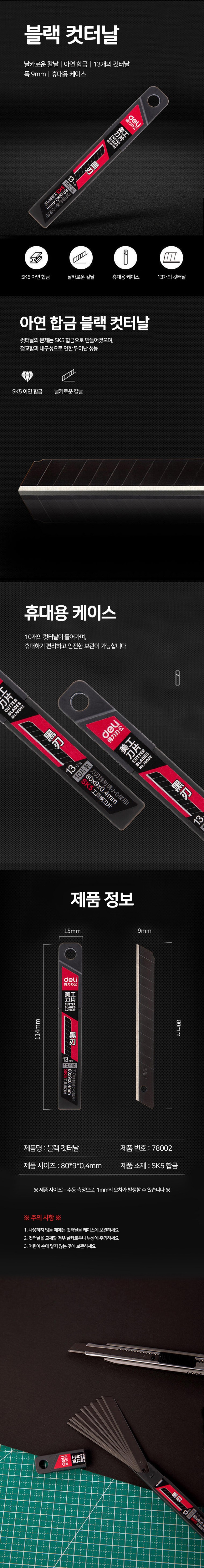 [델리] 블랙 커터칼날 컷터날 10개입(소)
