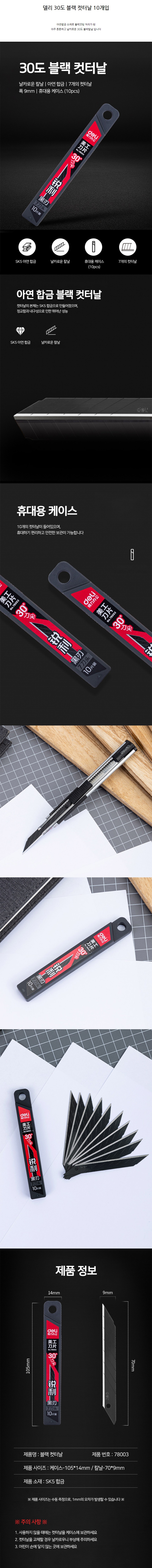 [델리] 코팅 블랙커터칼 30도 커터칼날 소형 10개입