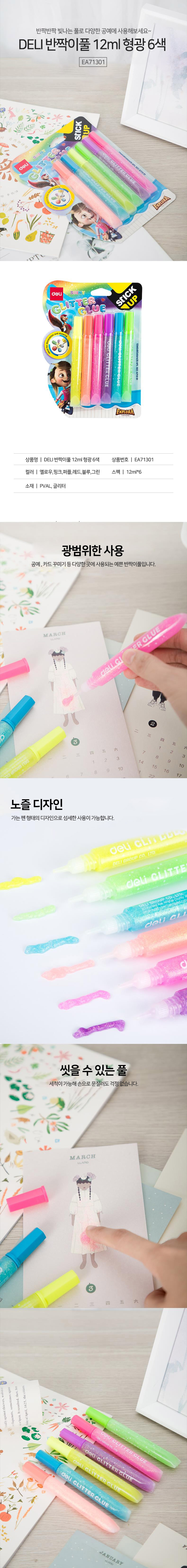 [델리] 형광 반짝이 풀 6색 12ml 꾸미기 미술 재료 촉감놀이