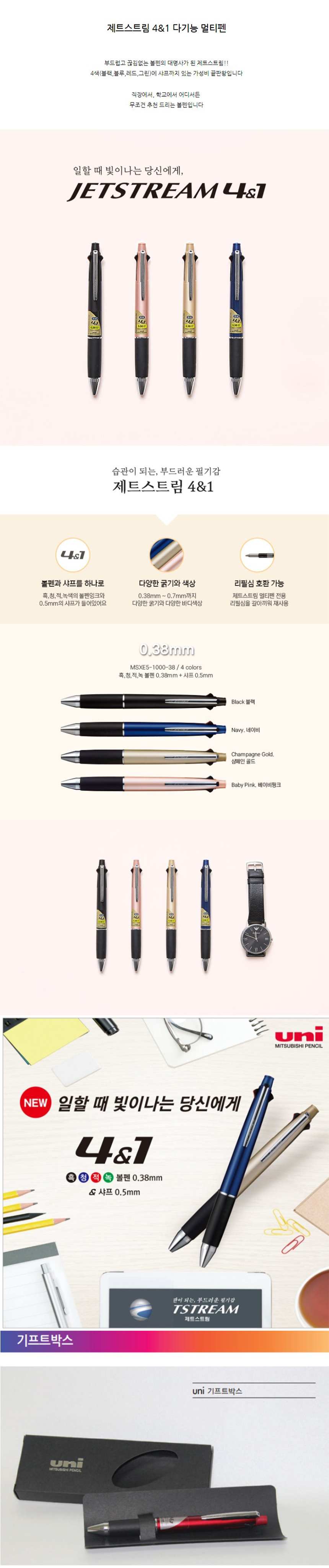 [유니] 제트스트림 4&1 4색 샤프 고급 볼펜 0.38