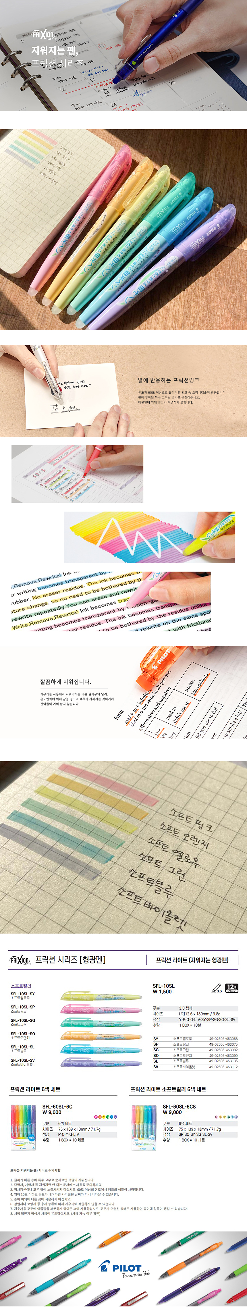 [파일롯트] 프릭션 라이트 지워지는 형광펜 6색 낱개