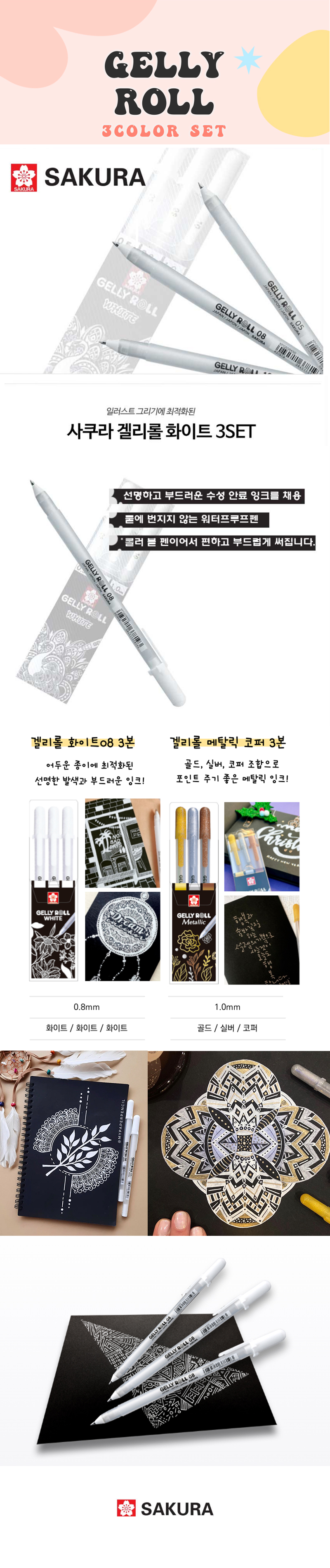 [사쿠라] 겔리롤 화이트 0.8mm 3본 세트