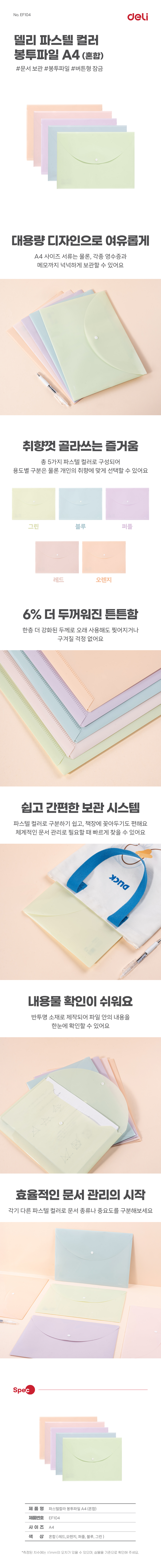 [델리] 파스텔 봉투화일 A4 파일 파우치