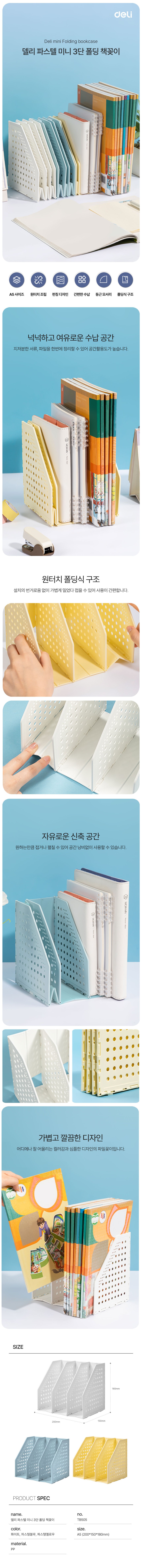 델리 파스텔 미니 3단 폴딩 책꽂이 접이식 파일꽂이 화일꽂이