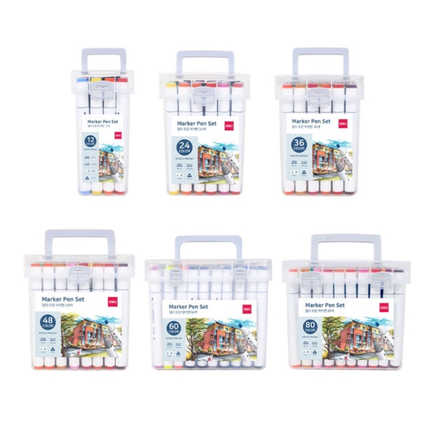 [델리] 삼각 트윈 마카 워셔블 마커 세트 (PP 케이스)